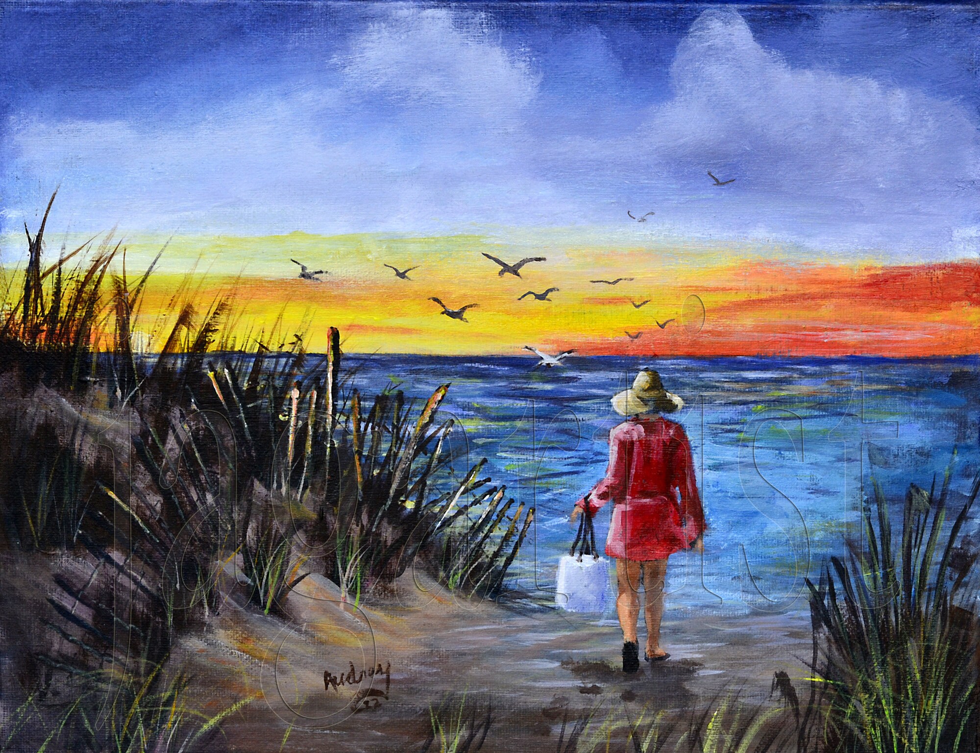 Beach Scene Folk Fine Art Stretch Canvas Acrylic Painting Wall Etsy Israel